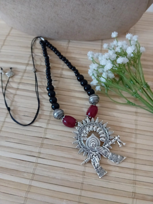 Maroon thread with oxidized pendant