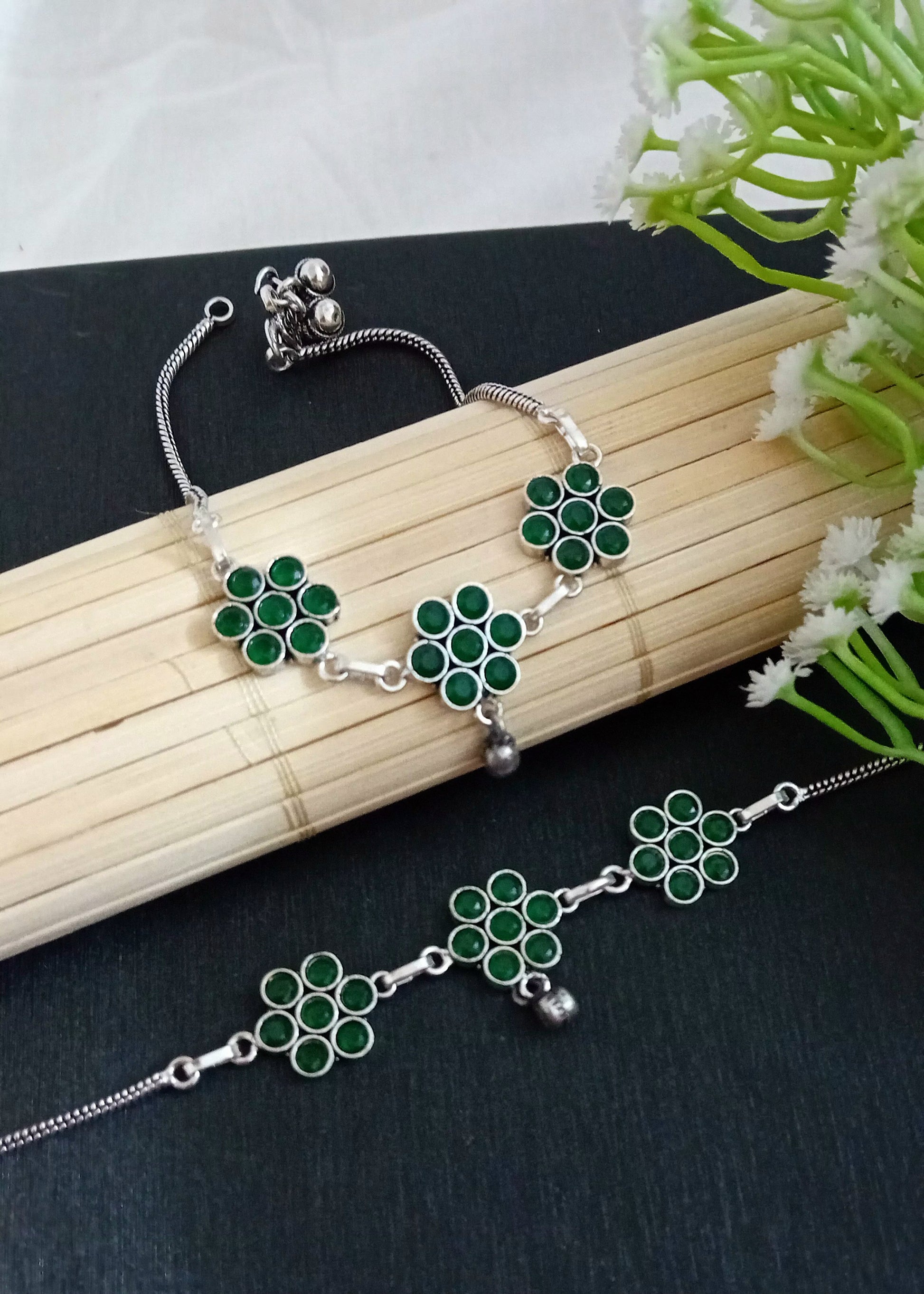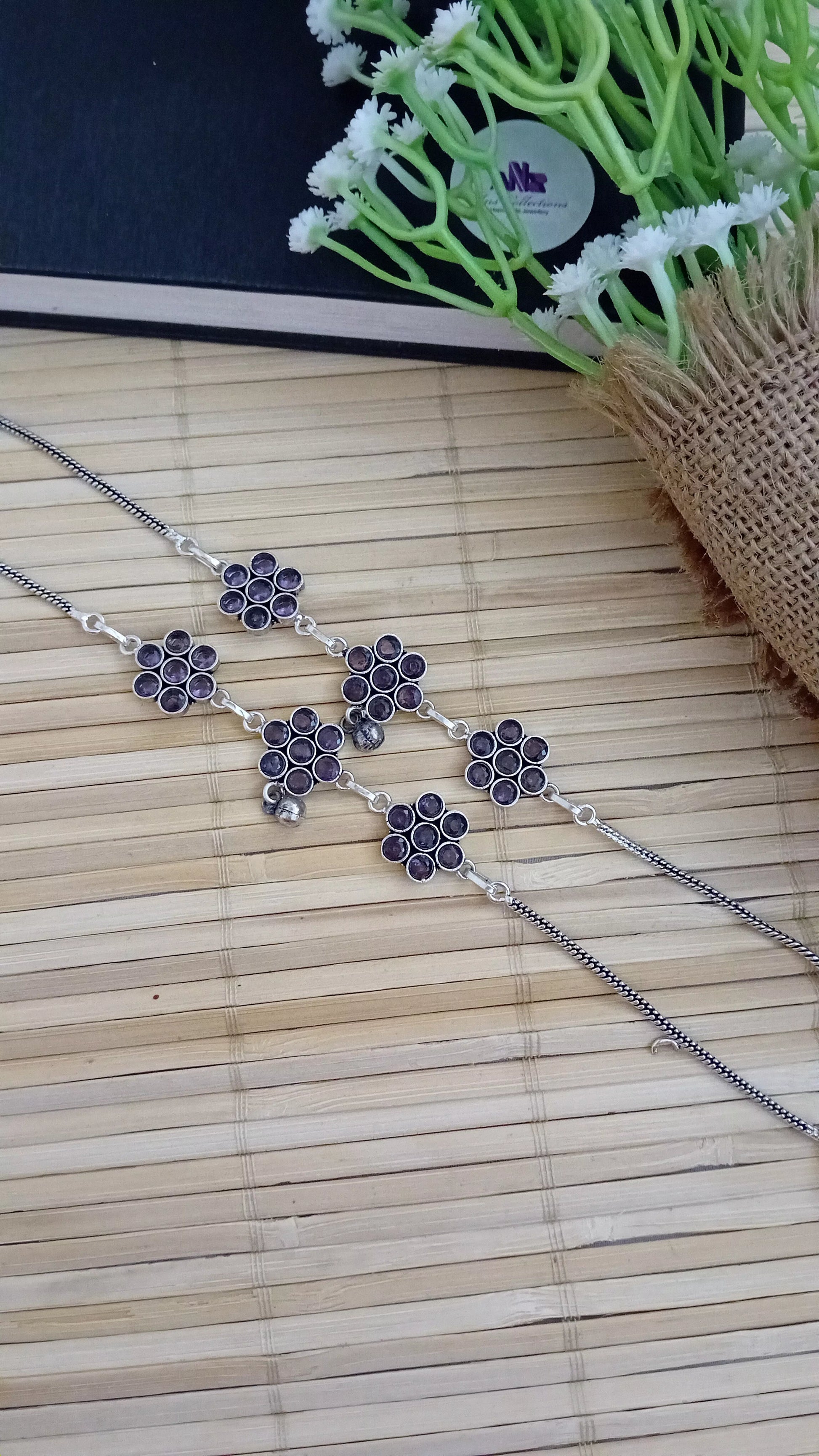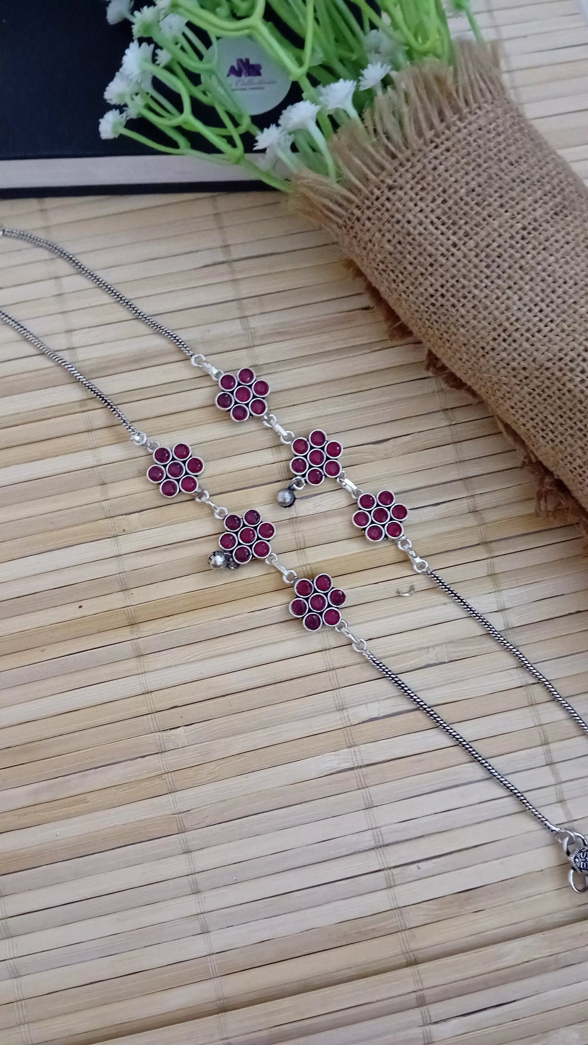 Upgrade your style with our Silver Look Alike Floral Design Metal Anklets. Featuring a delicate floral design, these anklets add an elegant touch to any outfit. Made with high-quality metal, they are durable and long-lasting. Elevate your fashion game with these beautiful anklets.