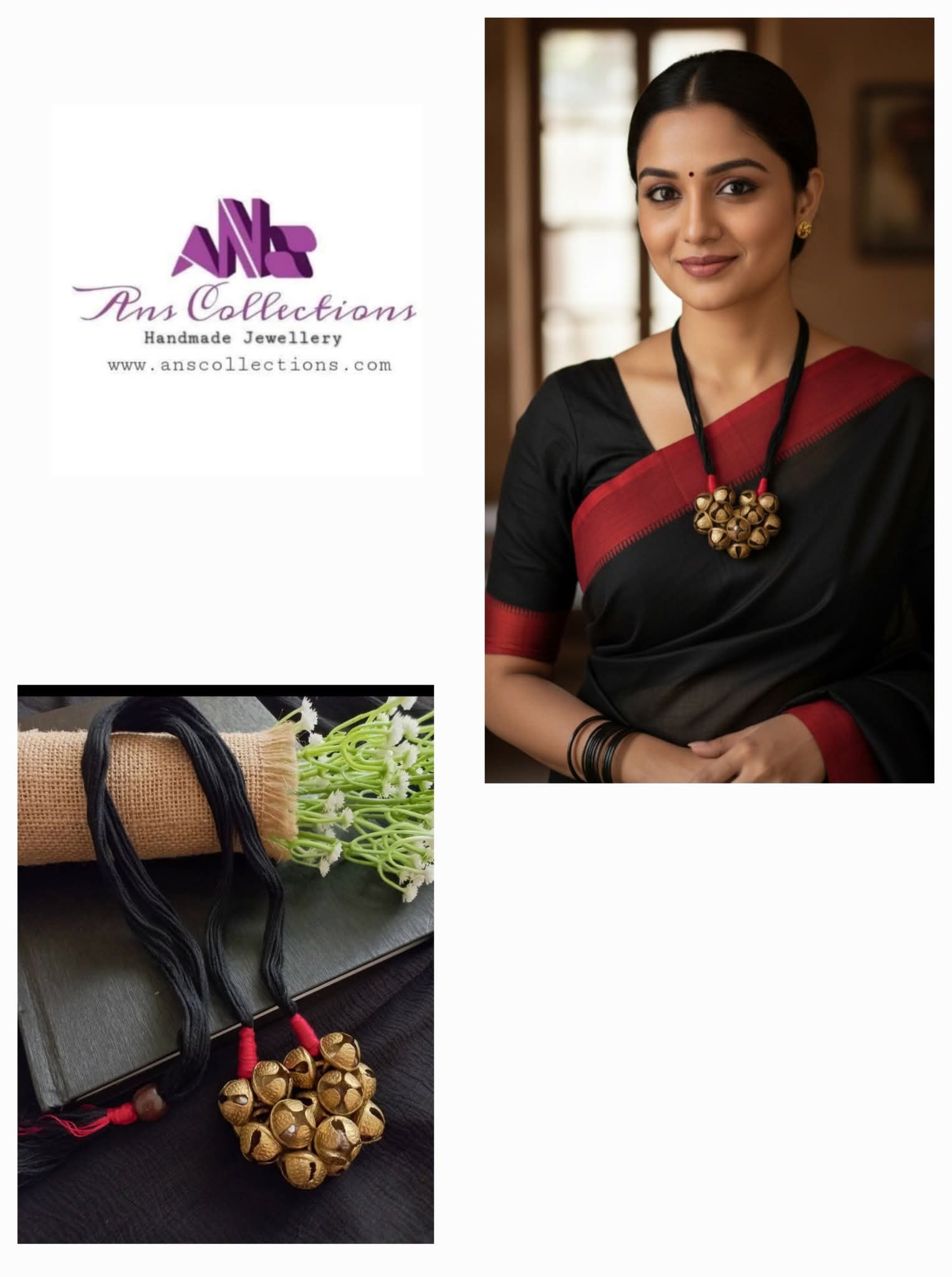 Experience the traditional sounds of India with Chilanka maala. Beautifully strung with black and red thread, these Chilanka bells create a harmonious and authentic atmosphere. Perfect for cultural events, meditation, and traditional dances.