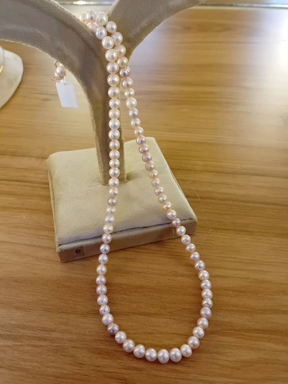Discover elegance with this 22-inch strand of AAA grade 6mm round freshwater pearls in a stunning peach and pink combination. The perfect accessory for any occasion, these pearls exude timeless beauty and sophistication.