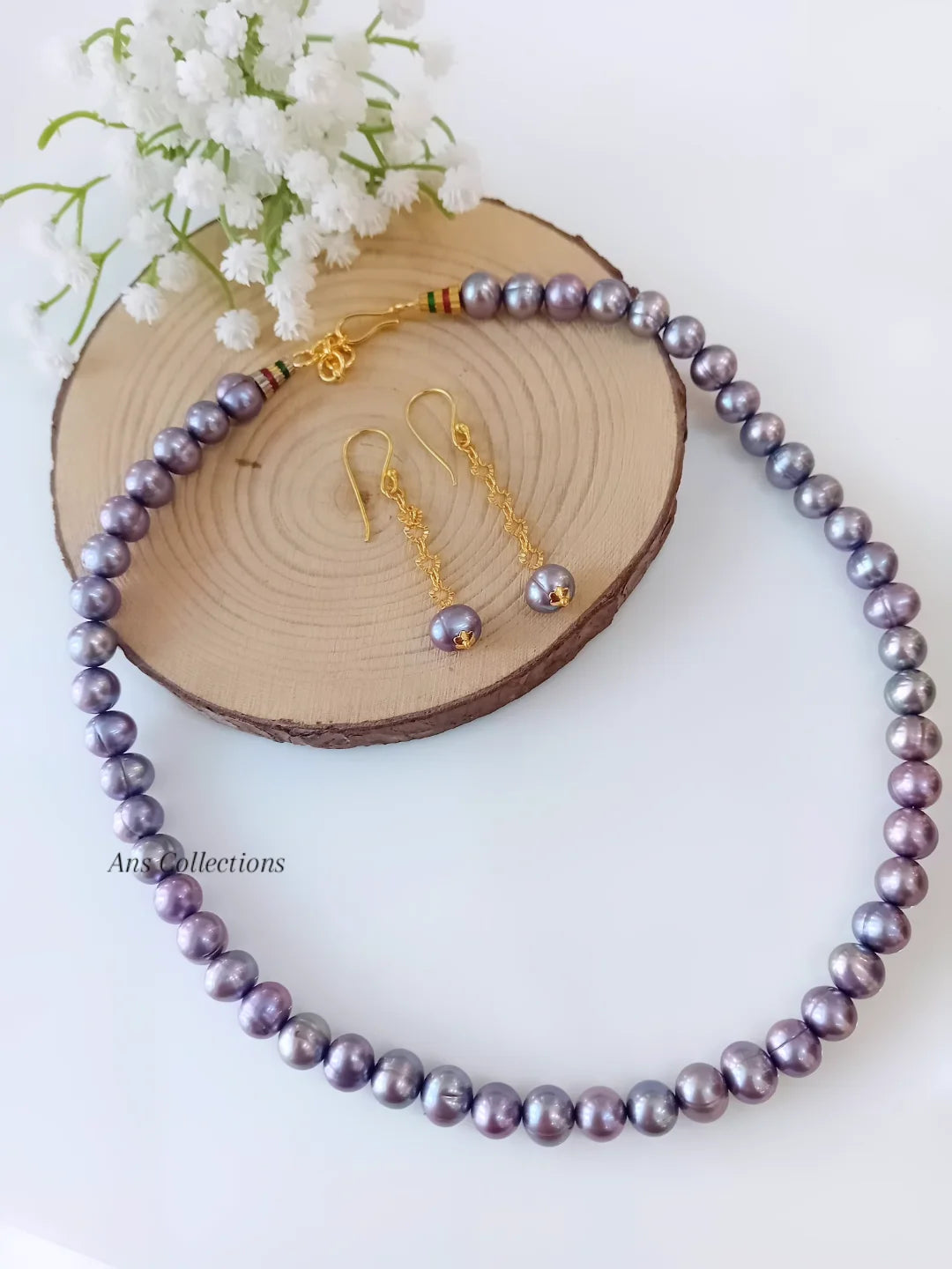The Freshwater Pearl Lavender Shade features 8 mm beads crafted from high-quality freshwater pearls, offering a subtle yet elegant hue. With a 19-inch necklace length, it provides a versatile fit for various occasions, enhancing both casual and formal attire with its refined appearance.