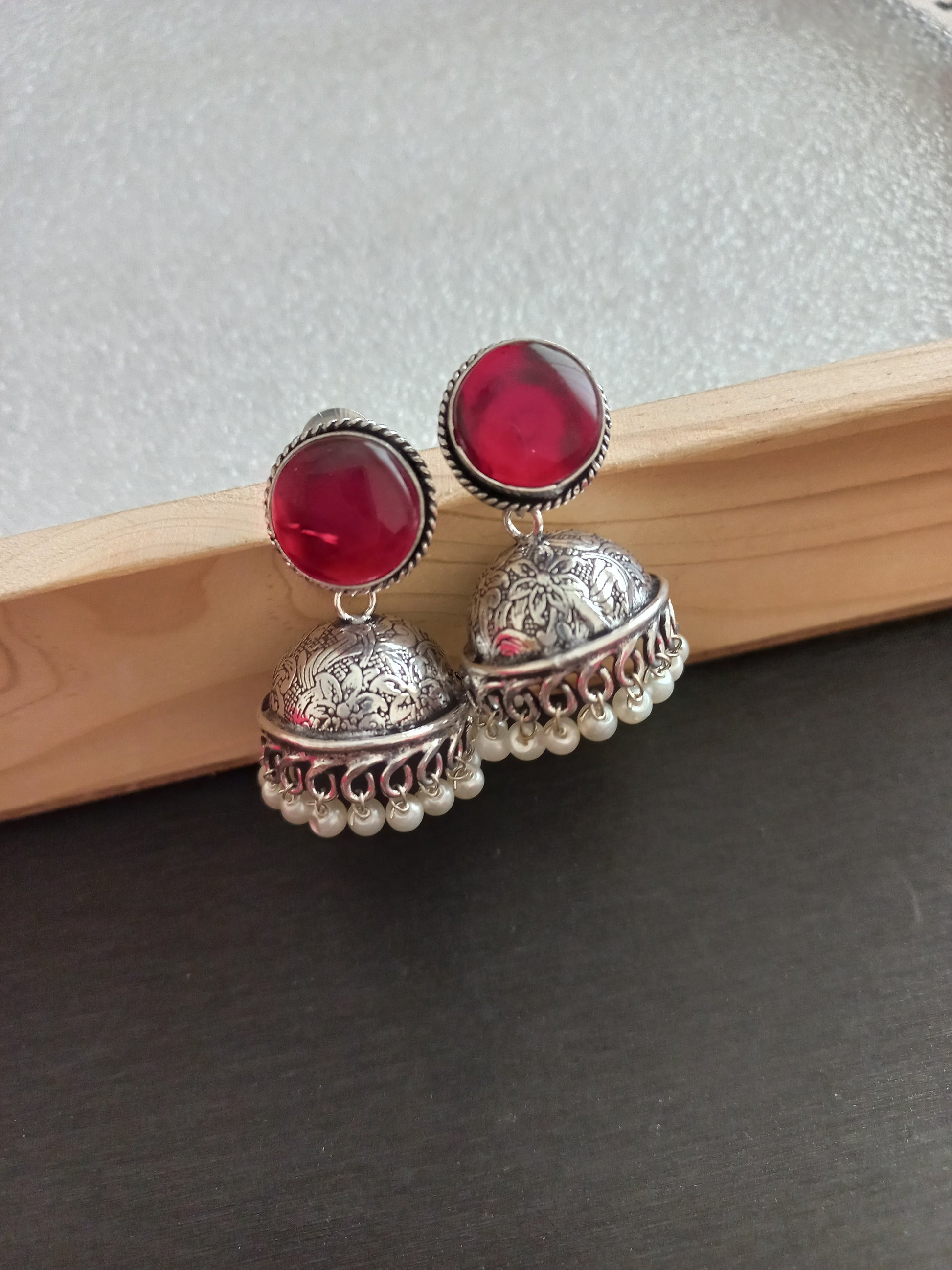 Add a touch of elegance with Ghimuka! This round stone stud features a brass base and a pearl gunguroo for added charm. Its medium size and light weight make it comfortable to wear. Available in red and pastel green.