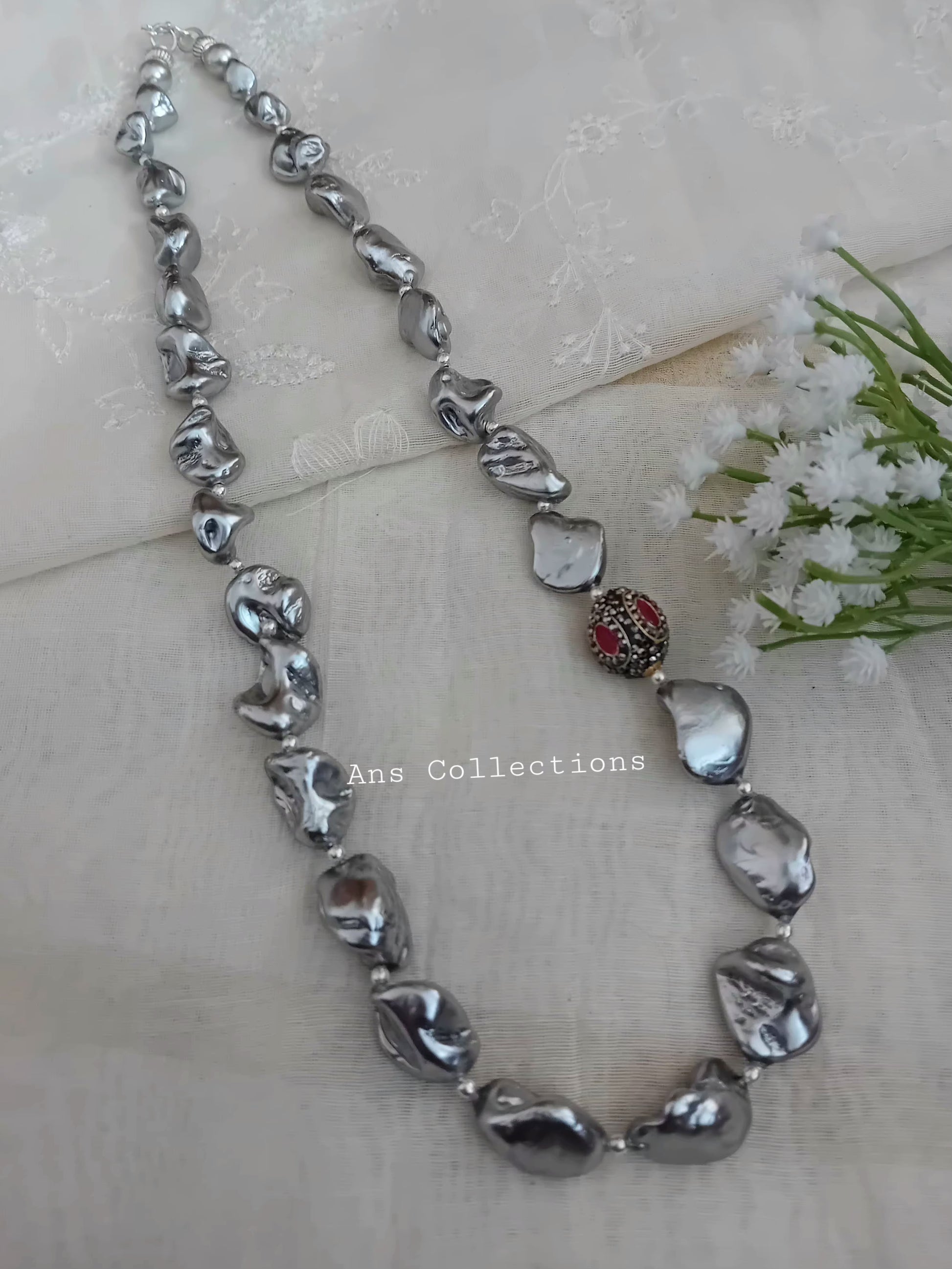 Elevate your style with our 22-inch grey shell pearl neckpiece. Its unique grey color and side focal beaded design make a stunning statement. The perfect addition to any outfit for a touch of elegance and sophistication.
