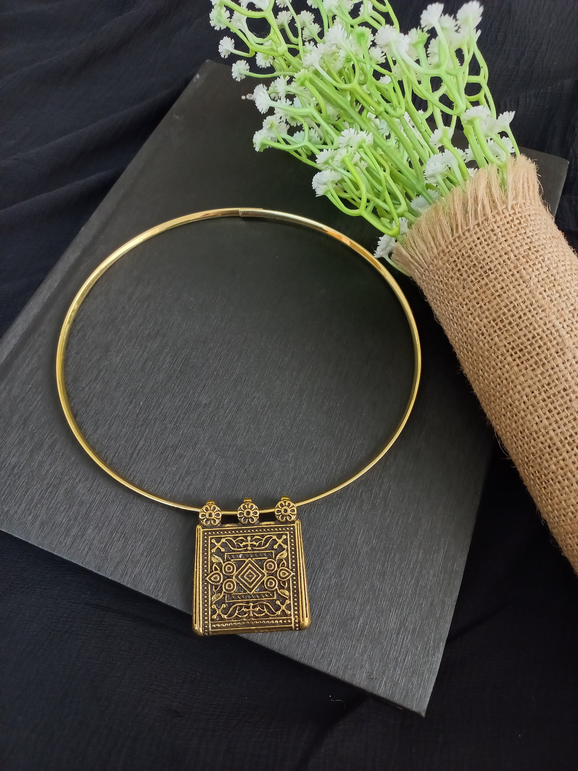 Introducing our Hasli, a stylish necklace with a trendy design. Made with gold plating and featuring a unique pendant, this accessory will elevate any outfit. Affordable luxury for a modern lifestyle.