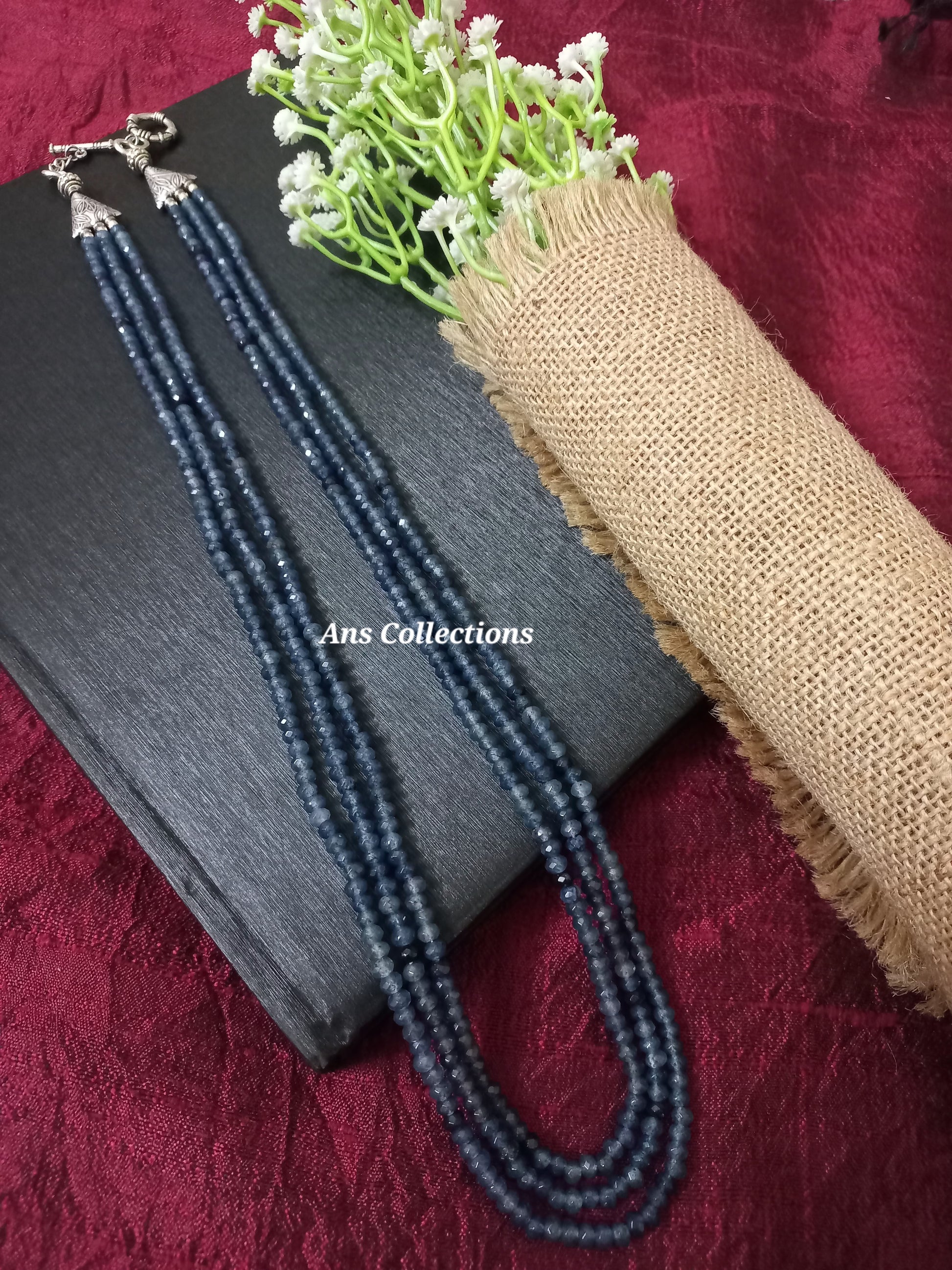 This triple layer beaded chain features a 4 mm onyx stone, providing both elegance and durability. The 24 inch length allows for versatile styling options. The oxidized metal back hook ensures a strong and secure closure. Perfect for any formal occasion.