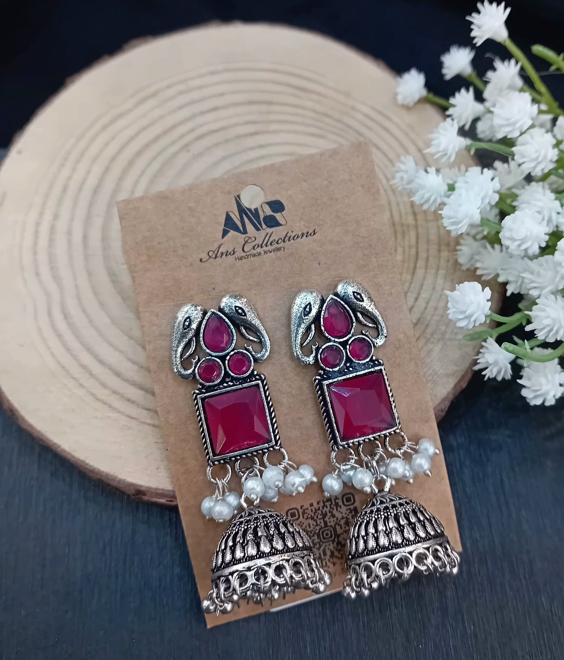 Expertly crafted, these medium sized Oxidised stone ghimuka earrings feature an intricate elephant design. Made to perfection, these earrings add a touch of elegance to any outfit. Experience the classic beauty and unique charm of oxidised stone with these stunning earrings.